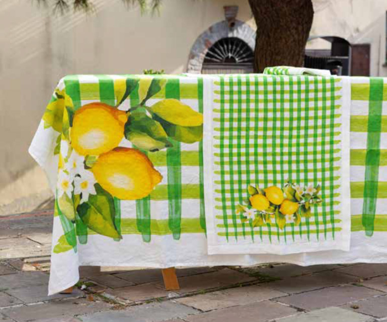 Le Telerie Toscane: Table Linens - Sorrento: 100% linen, water based color, simple edge. Tablecloths 67x67 inch, 67x94 inch, 67x110 inch, 67x126 inch; Table runner 20x63 inch; Napkin 20x20 inch; Placemat 13x20 inch; Tea towel 20x28 inch; Centerpiece 31x31 inch. - Household Linen Made in Tuscany