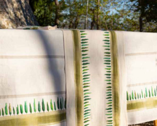 Le Telerie Toscane: Tovaglie e runner per la tavola - Bolgheri: 60% lino 40% cotone, rifinitura orlo semplice, stampa ad acqua. Tovaglie 180x180 cm, 180x240 cm, 180x280 cm, 180x320 cm, 180x360 cm, 180x450 cm; Runner 50x160 cm, 50x230 cm; Tovagliolo 50x50 cm; Tovaglietta 35x50 cm; Canovaccio 50x70 cm. - Biancheria per la casa dalla Toscana